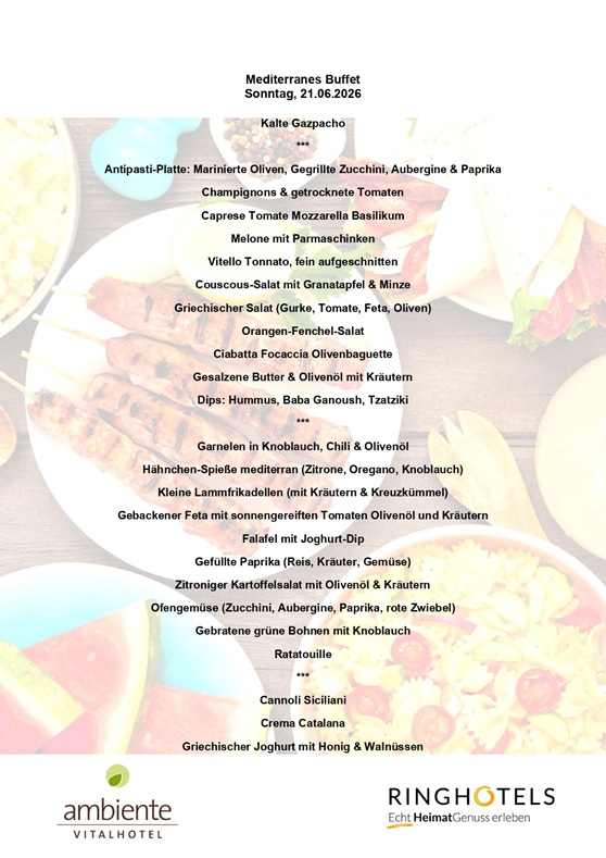 Werfen Sie hier schon vorab einen Blick auf das mediterrane Buffet zum Sommeranfang.